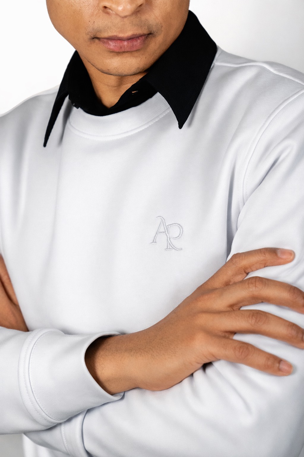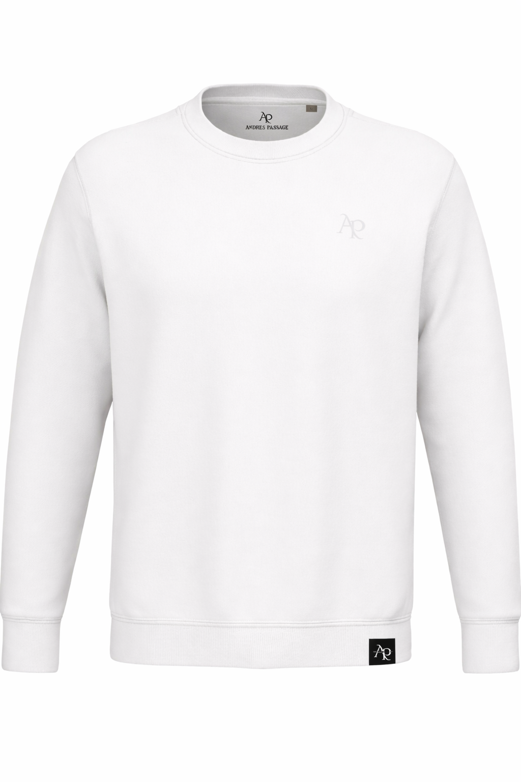 Sudadera blanca limpia y fresca, hecha con algodón orgánico y poliéster reciclado.